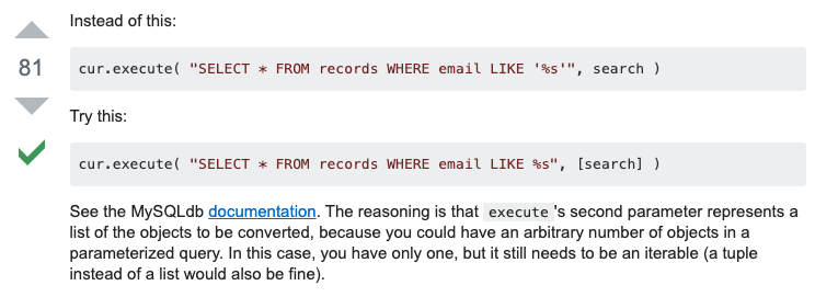 Python MySQLdb TypeError: not all arguments converted during string formatting