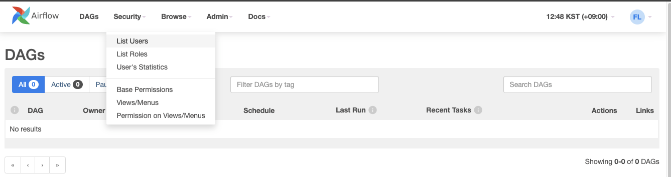 제일 기본적으로 Airflow를 세팅 해봤습니다.