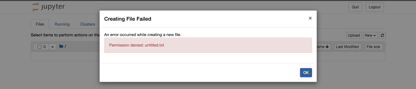 소유자를 변경하고 Jupyter Notebook에서 파일을 만들어 보겠습니다.