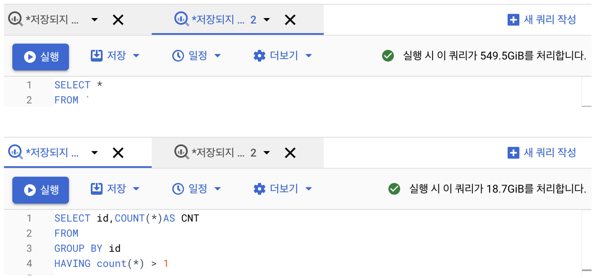 또는 가끔 이 테이블은 고유한 값이 없이 건수만 체크 해야 할 경우도 있습니다. 아니면 날짜가 없는 UPDATE가 일어나는 메타정보 테이블인데, 빈번하게 업데이트가 일어나므로 중복만 체크해야 하거나 하는 경우도 있습니다. (BigQuery의 경우 PK가 없기 때문에 고유하게 저장한지 여부를 정책으로 걸어두기 어렵다.)