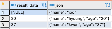SELECT '{"name": "kwon", "age": "37"}' AS json
