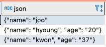 SELECT '{"name": "hyoung", "age": "20"}' AS json UNION ALL