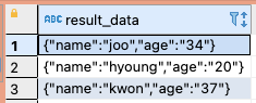 데이터를 보시면 2번 감싸져 있습니다. 이 부분도 간단합니다. 이렇게 위와 같이 Query를 실행하면 다음과 같은 결과가 나옵니다.