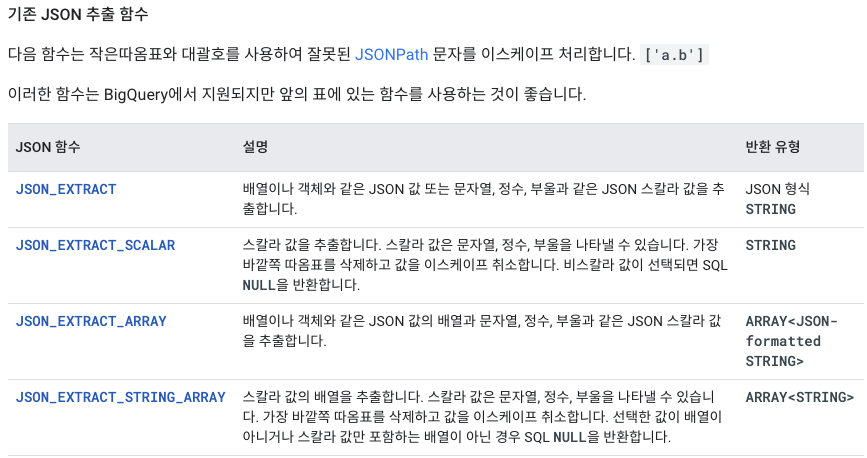https://cloud.google.com/bigquery/docs/reference/standard-sql/json_functions?hl=ko#json_query