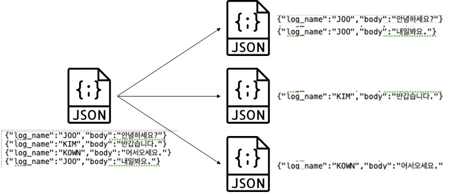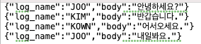 - /n으로 구분자가 있으나, 모든 로그 타입이 한 JSON파일에 있습니다.