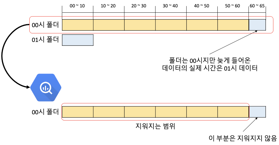 내가 만약에 00시 ~ 01시까지의 데이터를 적재한다고 하여, 정확하게 그 데이터만 있지 않습니다.
