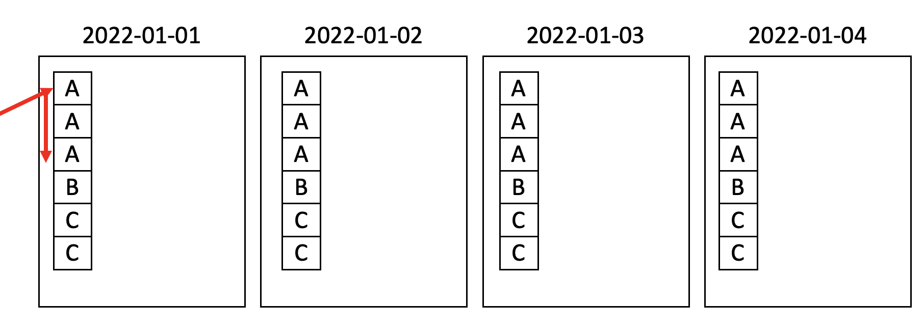기존에 파티션만 적용 할 경우 데이터가 정렬이 안되어 있기 때문에 가져올 때 파티션만 쓴다면 아마도 다음과 같이 데이터를 가져올 것 같습니다. BigQuery의 내부적인 데이터 Read를 알지 못하기에... 이것도 추측 입니다. 혹시 내부적으로 어떻게 동작하는지 논문이나 자료가 있으면 공유를 부탁드립니다.