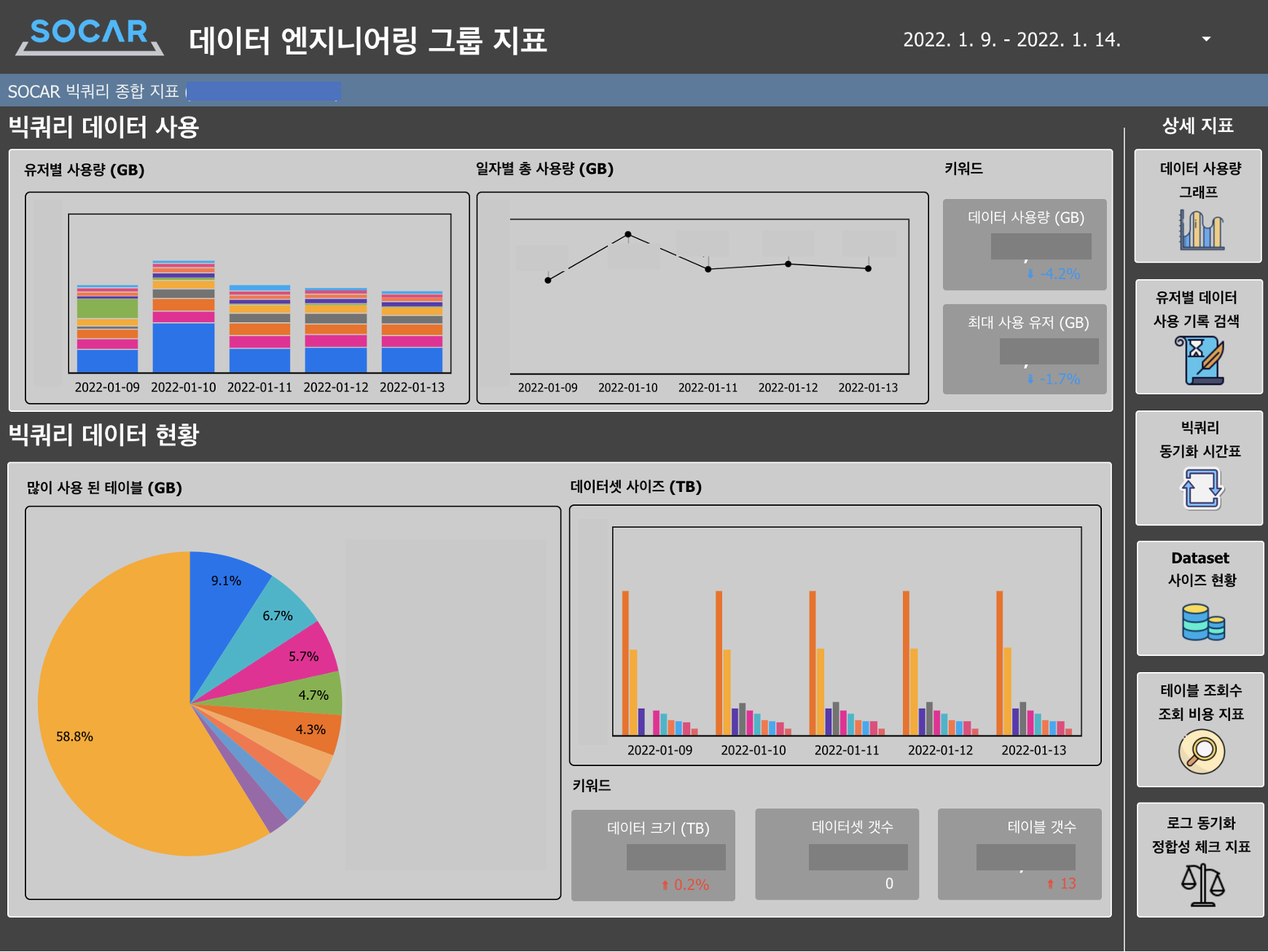 테이블을 얼마나 사용하는지 또한 얼마나 많이 조회하는지 파악하여, 해당 테이블이 얼마나 중요한지 파악할 수 있고 해당 테이블의 파티션이나 구조등을 변경하여 더욱 효율적으로 만들 수도 있습니다. 그래서 사용자가 단순히 Query를 많이 실행하고 용량이 큰 테이블을 조회하여 발생한다고 판단할 수 있지만, 해당 테이블 자체가 비효율적으로 만들어졌을 수 있기 때문에 이를 파악하기 위해서 테이블과 관련된 항목도 만들 수 있습니다.