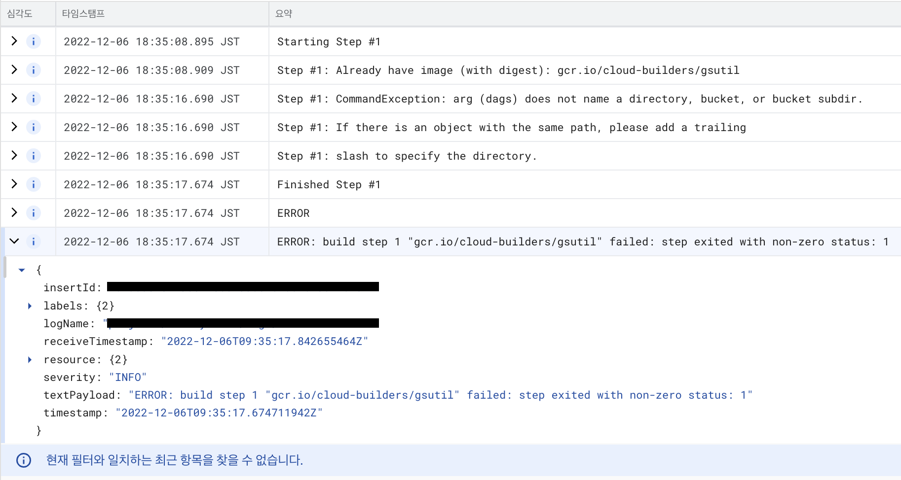 "ERROR: build step 1 "gcr.io/cloud-builders/gsutil" failed: step exited with non-zero status: 1"