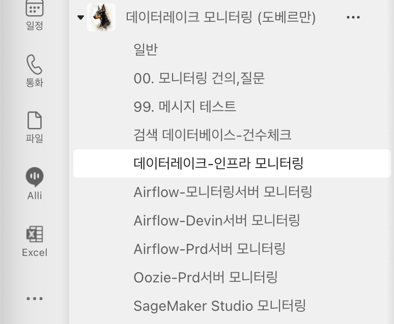모니터링 알람의 경우 기존에 사용하는 메신저가 Microsoft의 Teams라서 Teams로 통일하기로 하였습니다. Slack과 이원화 되어 있어서 자칫 사용자가 2개의 메신저를 혼동하거나 너무 여기저기에서 알람이 오면 불편하고 Slack을 사용하지 않는 사용자의 경우는 계정을 따로 만들어야 하는 이슈가 있기 때문에 Teams를 통해서 알람을 받기로 통일하였습니다.