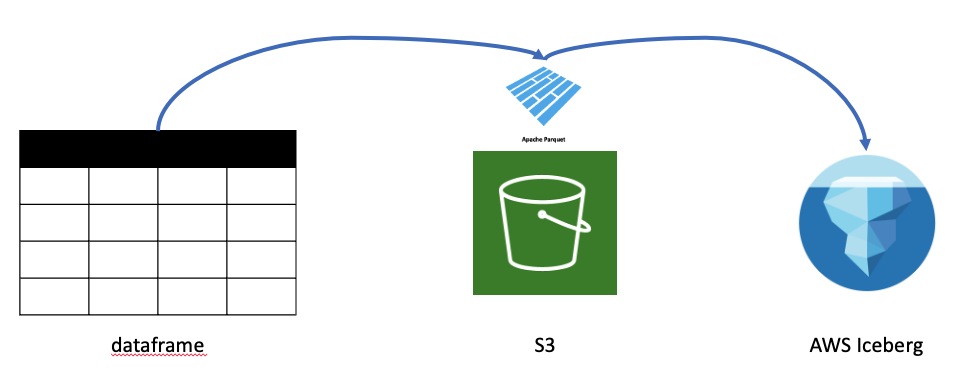 데이터를 Python에 dataframe 형태로 만들었다가 S3에 parquet로 내리고 그 데이터를 Iceberg에 Import 합니다.