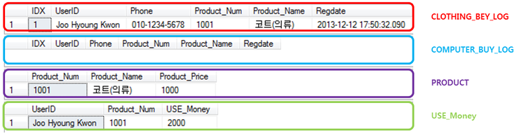 여기서 눈여겨볼 것은 마지막의 USE_Money 테이블입니다.