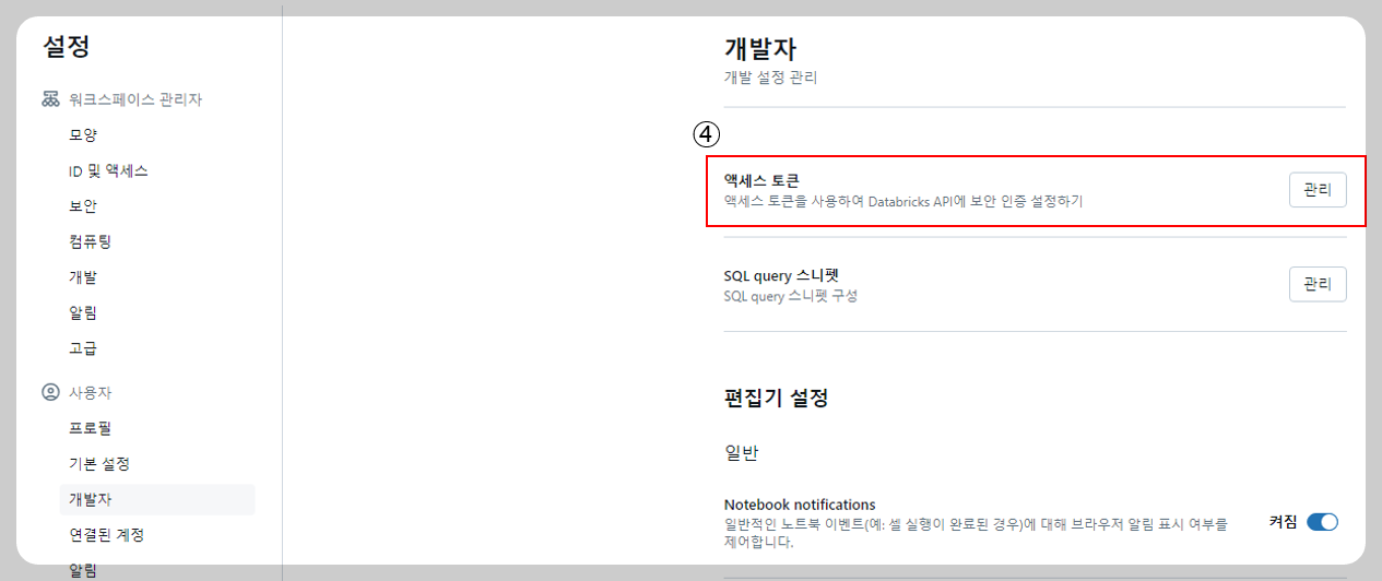 위의 경로에 들어가면 server-hostname , http-path를 한 번에 확인할 수 있습니다. 그리고 다음으로 token을 생성해야 합니다. token을 생성하는 방법은 다음과 같습니다.