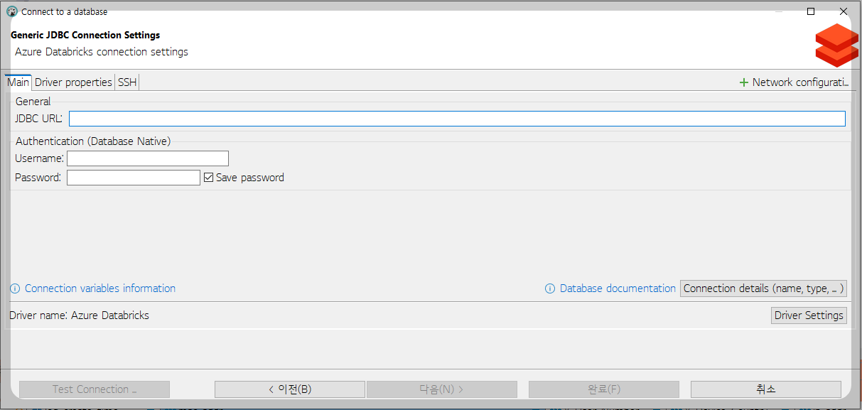 저는 Azure Databricks와 DBeaver 통합이란 글을 보고 설정하였습니다. Databricks 공식 가이드와 동일하지만 한글이 지원되므로 보기 더욱 편합니다.