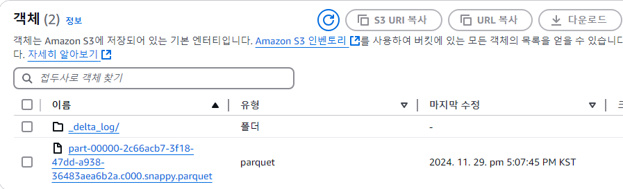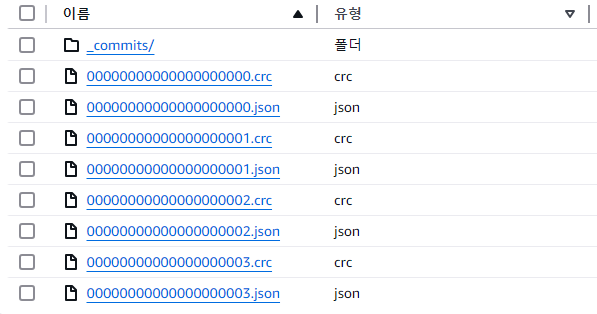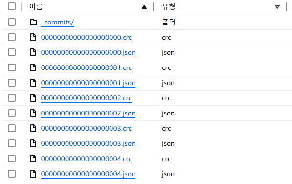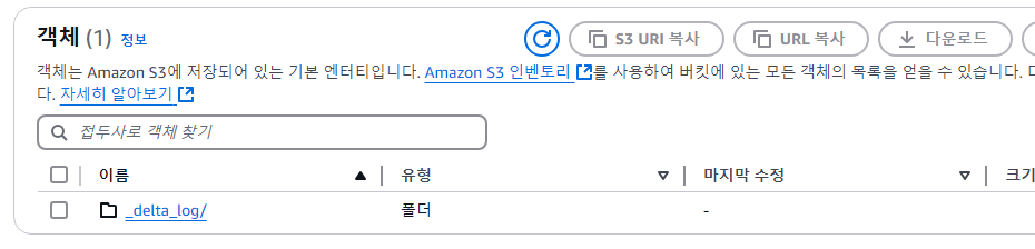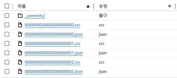 테이블을 만들면 다음과 같이 _delta_log 폴더가 생깁니다.