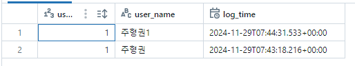 SELECT를 하면 다음과 같이 2줄의 row가 보입니다.